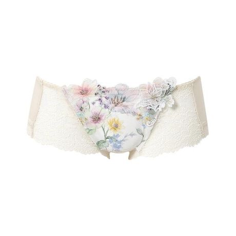 −麗しのバラ園− モナコ日差しにあたたかみが増して春の訪れを感じる季節。モナコのバラ園では花々が咲きはじめ、やわらかな香りに満たされます。鳥のさえずりや楽しげに舞う蝶が出迎えてくれる庭園に咲く色とりどりのバラを、豪華な立体アップリケや多色使いのプリントで華やかに描きました。・フロントは裏打ち付きで透けにくい・春の訪れを感じるような華やかな彩りのプリント&ラメ糸のチュールエンブロイダリーレース・フロントには草花モチーフのケミカルアップリケに花を描いたチュールエンブロイダリーアップリケの立体加工がされ特別感のあるデザイン