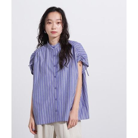 昨年好評だったドロストスリーブデザインのシャツを、今年はバンドカラーにして登場!袖山のドローストリングがアクセントになり、肩まわりから二の腕をカバーしながら着ていただけます。長めの着丈と程よくゆとりのあるシルエットは、前ボタンを開けて、羽織りとしても使えるデザイン。無地オフカラーに加えて、今年は得意とするストライプ柄を2色揃えています。<詳細>仕様・前ボタン裏地・なし透け感・ややあり / 光沢・なし / 伸縮性・なし 生地の厚さ・普通※モデルの着用画像の場合、光の当たり具合により、実際の色味と異なって見えることがございます。色味は、商品単体の画像をご参照ください。
