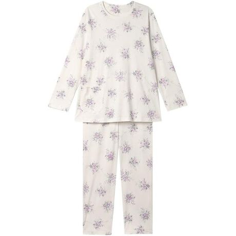 【パジャマ(ロング袖ロングパンツ)】・本体に、生地表面の毛羽を取る特殊な加工をほどこした、綿100%のスムース素材を使用・光沢感があり、しなやかな肌ざわり・やさしいタッチで描かれたブーケ柄のプリント【サイズ詳細】M:身幅52.0cm 着丈66.0cm 身丈69.5cm 肩幅40.0cm 袖丈55.0cm ボトム脇丈95.0cm 裾まわり39.0cm ウエスト58.0cm ヒップ100.5cm 股下(レングス)67.5cmL:身幅56.0cm 着丈66.0cm 身丈69.5cm 肩幅41.5cm 袖丈55.0cm ボトム脇丈95.5cm 裾まわり41.0cm ウエスト63.0cm ヒップ104.5cm 股下(レングス)67.0cmLL:身幅60.0cm 着丈67.0cm 身丈70.5cm 肩幅43.0cm 袖丈55.5cm ボトム脇丈96.0cm 裾まわり44.0cm ウエスト68.0cm ヒップ109.5cm 股下(レングス)67.0cm※出来上がり寸法を表示しております※アイテムによって柄の出方が異なりますのでご了承ください。