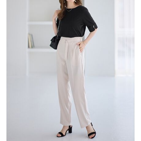 ・シンプルデザインのTシャツに施したパール調ビーズが上品なアクセントをプラス