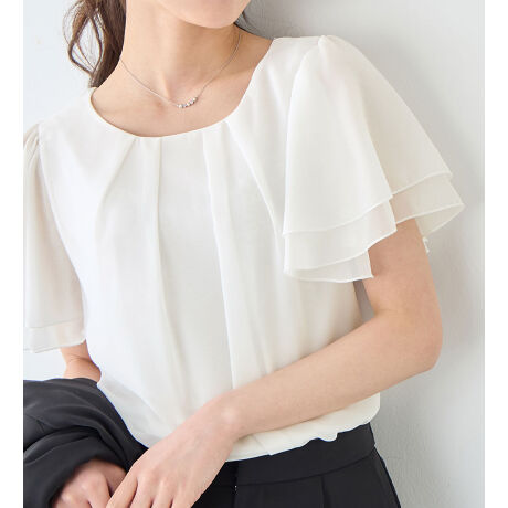 ・2段フリルのフレアー袖が上品なブラウスに甘さをプラス