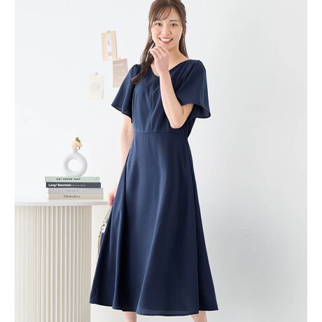 ・気になる二の腕はフレアー袖でオシャレにカバー。