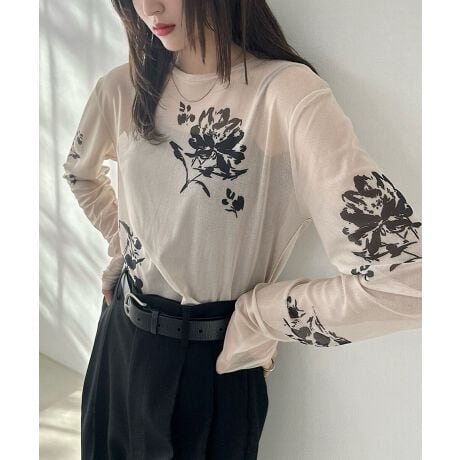フラワー プリント シアー 長袖 トップス Freesia フリージア