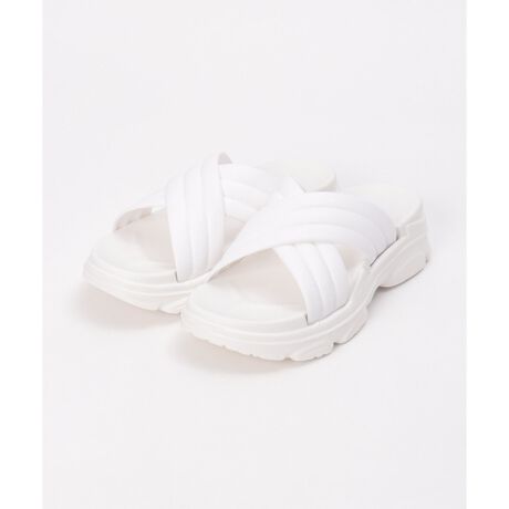 シンプルながら存在感のある厚底デザインが魅力のクロスサンダル。