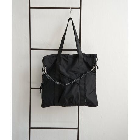 コード編みの持ち手と肩掛けできるテープハンドルの2WAY仕様が魅力のトートバッグ。