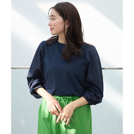 ・異素材コンビの半端袖プルオーバー・袖に布帛を使用することで、きちんと感を表現