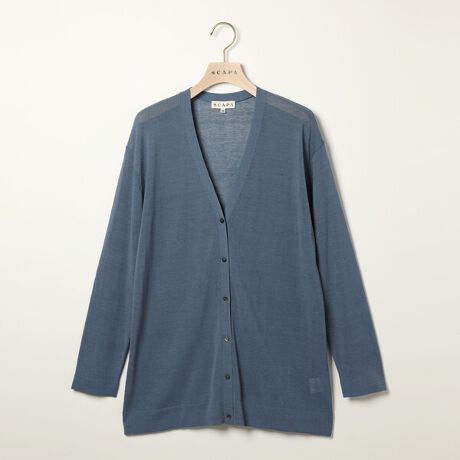透け感のある薄手のハイゲージニットで仕立てたロング丈カーディガン。深めのVネックとリラックス感のあるシルエットを特徴としたシンプルなデザインです。カジュアル、きれいめ問わず、どんなコーディネートとも相性の良い万能アイテム。電車や職場、カフェなど、夏場の冷房対策にもおすすめです。