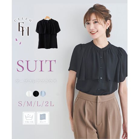首回りのギャザーデザインは華やかな印象を与えてくれ、オフィススタイル・フォーマルスタイル・お出かけスタイル・カジュアルスタイルすべてにぴったり。