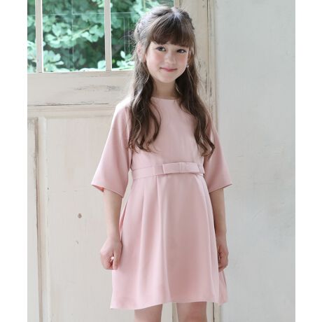 キッズ五分袖ウエストリリボンワンピース
