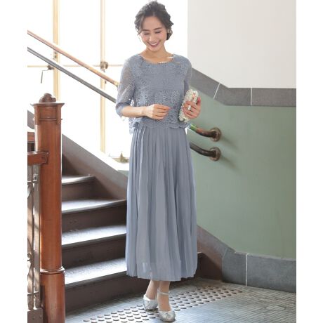 結婚式 プリーツロングスカートワンピース