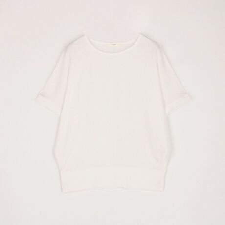 ベーシックなデザインですが、生地に遊びがあり、袖と裾に入ったリブとドルマンシルエットにより、カジュアルな着こなしを楽しめます。