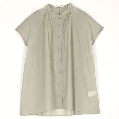 シアー素材を使った前開きのフレンチスリーブシャツです。