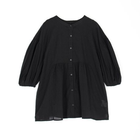 ノーカラーで首元はすっきりさせ、細かく取られた袖や胸下の切り替え、背面のギャザーデザインが楽しめるブラウスです。