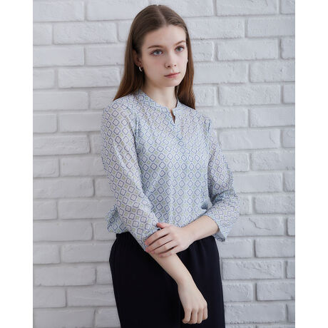 キーネックと胸元のタックデザインをアクセントに上品で柔らかな印象に。