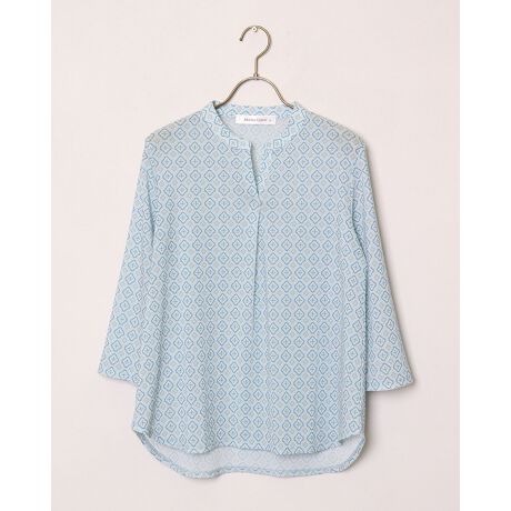 キーネックと胸元のタックデザインをアクセントに上品で柔らかな印象に。