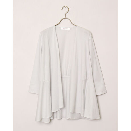 [型番:415R3600]柔らかく滑らかな肌触りの綿ポリエステル素材を使用したトッパーカーディガン。胸元のヨークから裾に向かってボリュームを持たせた美しいドレープが上品な雰囲気を醸し出します。