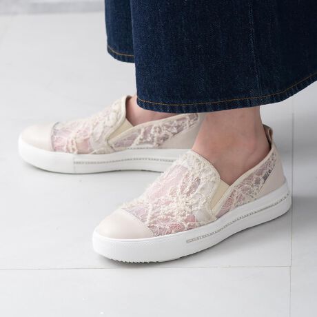 シアー感のあるレース素材を使用したスリッポンタイプのスニーカー。