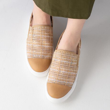 シアー感のあるレース素材を使用したスリッポンタイプのスニーカー。