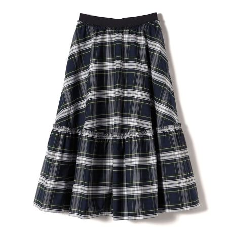 大きなピッチのタータンチェック柄のオックス素材で作った、たっぷりとゆとりのある2段ティアードのロングスカートです。