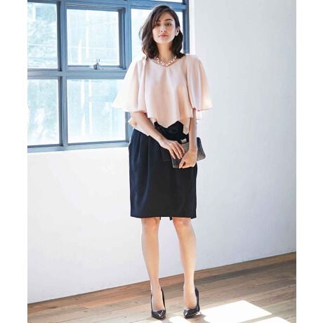 トップスにはドレープの美しい光沢感のあるジョーゼットシフォンを使用。