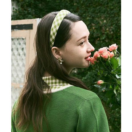 春夏にピッタリな爽やかなグリーンのギンガムチェックがとても可愛いカチューシャです!太めなのがよりレトロで気に入りました。ワンピースとお揃いで購入しました。