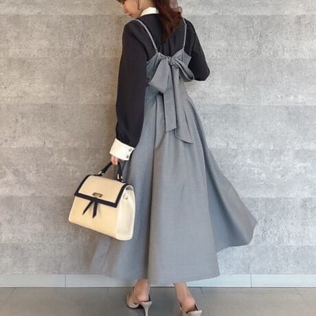 トレンドライクなカッティングデザインはお好みのサイズでリボンが結べるデザインでフィット&フレアーの美シルエットを生み出します?