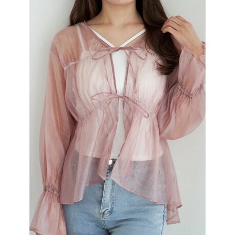 ・胸元はストラップがV字になっていて襟ぐりの開いたトップスやカーデのインナーにもぴったり。