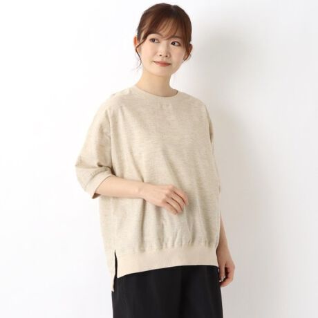 さらっとした柔らかな綿麻レーヨン生地を使用。ネックと袖と裾のリブでカジュアル感をプラス。