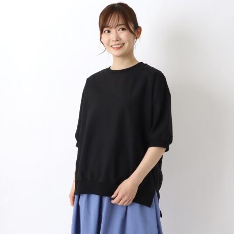 リブ付き5分袖ブラウス