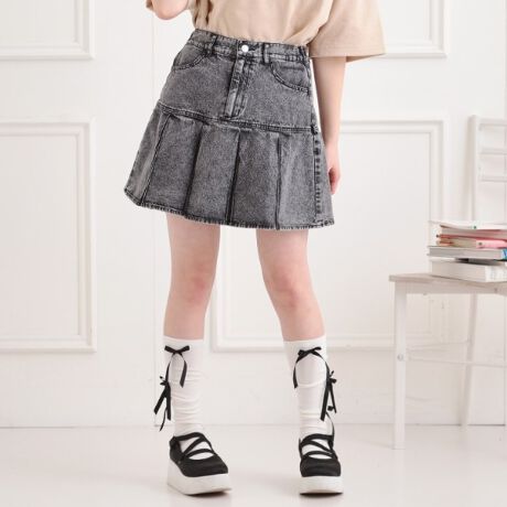 デニム裾プリーツスカート