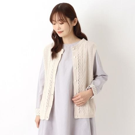 コットンの柔らかい肌触りが心地よいニットベスト。