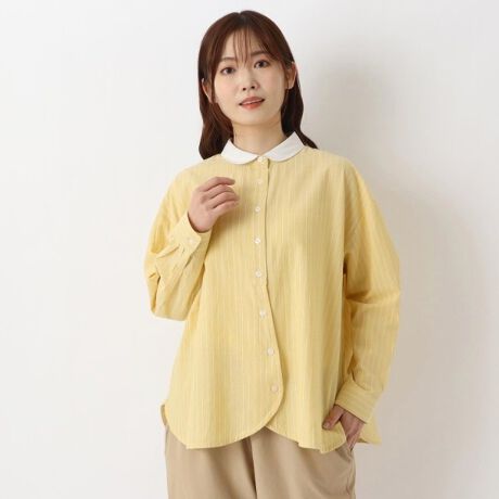 柔らかな綿100%の素材のストライプ柄ブラウスが登場。