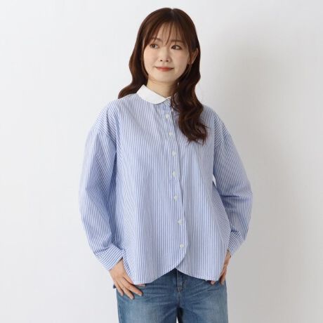 柔らかな綿100%の素材のストライプ柄ブラウスが登場。