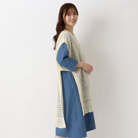 透かし柄がナチュラルな雰囲気を出してくれるロングジレ。