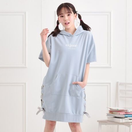 サイドにレースアップデザインが施されたガーリーなパーカワンピース。