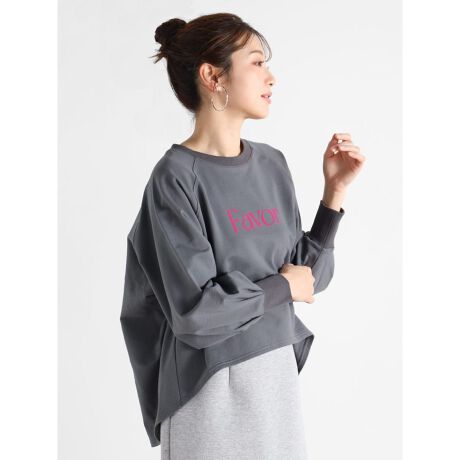 表面感のあるバイカラーなフロッキーロゴが目を惹くプルオーバー。