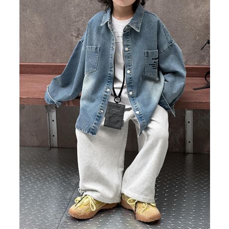 鮮やかなブルーのデニム素材を使用したキッズ用シャツ。胸ポケットのデザインが特徴。柔らかな素材で作られており、軽量で肌触りが良く、動きやすい仕上がりになっています。ゆったりとしたシルエットで普段使いからおしゃれな外出着まで幅広く活用できる万能な一着です。
