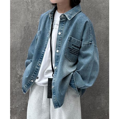 鮮やかなブルーのデニム素材を使用したキッズ用シャツ。胸ポケットのデザインが特徴。柔らかな素材で作られており、軽量で肌触りが良く、動きやすい仕上がりになっています。ゆったりとしたシルエットで普段使いからおしゃれな外出着まで幅広く活用できる万能な一着です。
