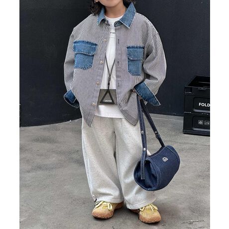 【aimoha KIDS】ストライプカジュアルデニムシャツ