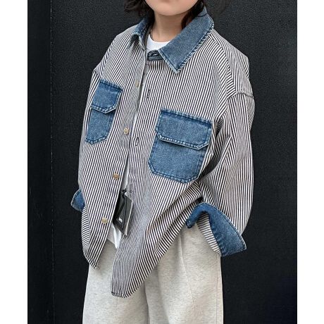 【aimoha KIDS】ストライプカジュアルデニムシャツ