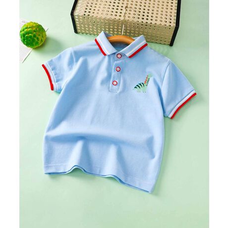 カラフルなラインの入った襟と袖口が目を惹くキッズポロシャツ。胸元には可愛らしい刺繍が施され、遊び心のあるデザインに仕上げています。ボタンの縁は赤色で、元気で明るい印象をプラス。爽やかな4色展開(グリーン、イエロー、ブルー、ホワイト)で、日常使いにぴったりのアイテムです。