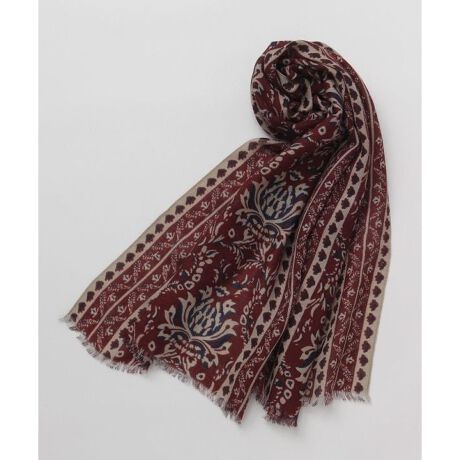 [型番:IKHP4301-2024]普段のコーディネートにアクセントとして使えるストール。ウール混のストールにインドの伝統的な柄をプリント。ユニセックスでお使いいただけます。