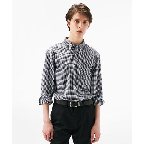 ・爽やかな印象を与えるギンガムチェック柄のオックスフォードシャツ。衿型は首元がすっきりと決まるボタンダウンカラーを採用しています。左胸のフラッグロゴがアクセント。シルエットはセットインスリーブで肩周りをすっきりとまとめ、後ろ身頃のセンターボックスタックで着心地にゆとりを持たせました。