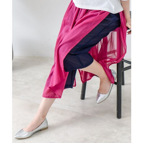 色はオレンジというよりテラコッタでした。ウエストのゴムはきつめでした。歩く時にしか履いてませんが、自転車だと、何となくタイヤに巻き込まれたり、風でスカート部分がはだけそうな気がしました。