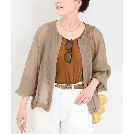楊柳の様な縦畝感が特徴の軽くエアリーなシアー素材のライトブルゾンです。