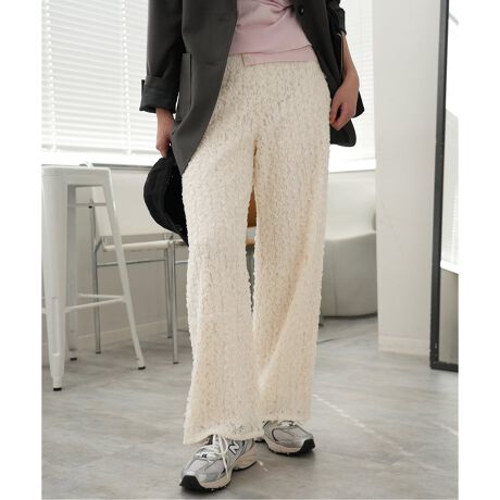 ・細かめの表面感のあるフリルをあしらったレースパンツ。