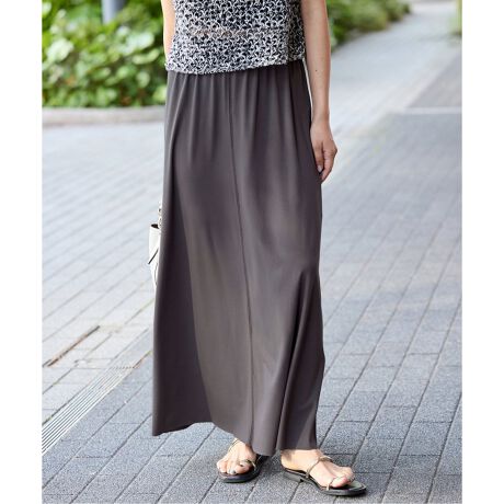 腰回りはすっきりとさせ、裾に向かって女性らしいフレアシルエットに仕上げています。