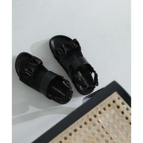 ギャザーをふんだんに寄せたサテンのアッパーに、足裏の傾斜に合わせたフットベッドインソールを使用した、フェミニンかつリラクシーな印象のフラットサンダルです。バックバンドはゴム仕様なので着脱が楽にでき、フィット感もあります。※モデルの着用画像の場合、光の当たり具合により、実際の色味と異なって見えることがございます。色味は、商品単体の画像をご参照ください。【センチ】S:約22.5cm、M:約23.5cm、L:約24.5cm