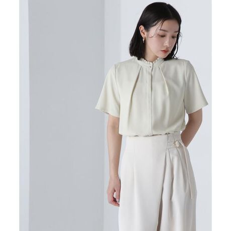 フリルネックタックブラウス