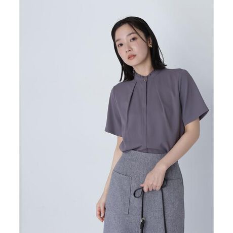 フリルネックタックブラウス